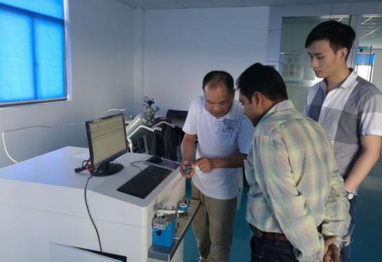 9月17日,中秋節(jié)放假第三天,大家還在假期中,而一譜一片繁忙。Mr. Michael Sanders和他的同事2人一行來到一譜直讀光譜儀生產(chǎn)基地,研發(fā)部水工全程陪同,之前在電話中了解到他們公司主要產(chǎn)品是純鉛制品,水工介紹了這款JB-750直讀光譜儀,并且現(xiàn)場測試了客戶帶過來的樣品,經(jīng)過近2小時的反復(fù)測試,客戶對于我們產(chǎn)品的檢測準確度和穩(wěn)定性表示非常滿意。